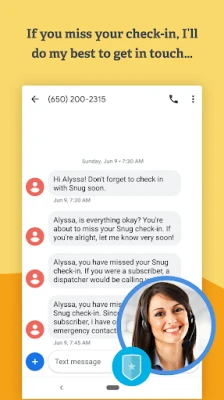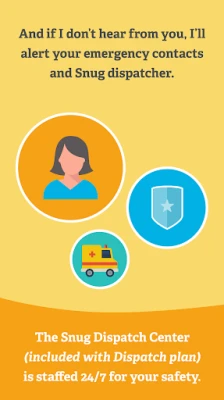 If you don't check in by your selected daily time, a Snug dispatcher will call to check on you. If you still don't respond, your emergency contacts will be alerted and then emergency services will be called for a wellness check.